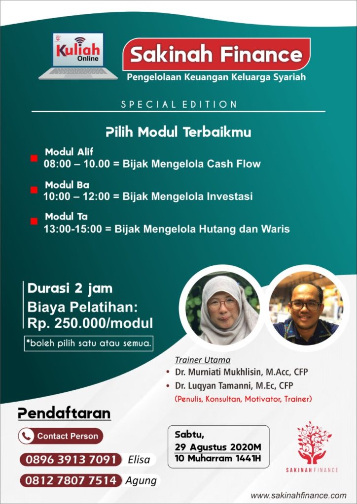 Ketinggalan Kelas Online Sakinah Finance Bulan Lalu? Jangan khawatir…Masih ada jadwal di bulan ini Ya: AGENDA SAKINAH FINANCE Bagi pemegang